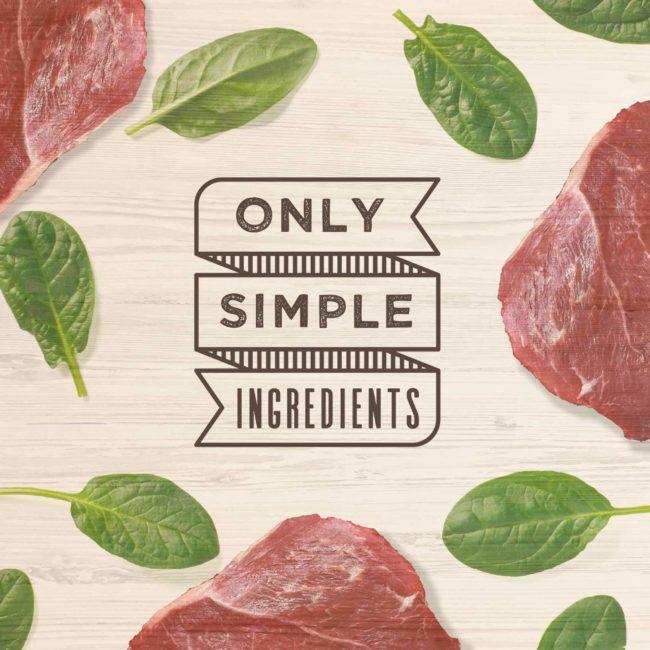 Beef, pea flour, sweet potatoes, maple syrup, vegetable glycerin, flaxseed oil, ground flaxseed, carrots, salt, natural smoke flavor, citric acid (preservative), spinach, natural chicken flavor, sorbic acid (preservative), rosemary extract.