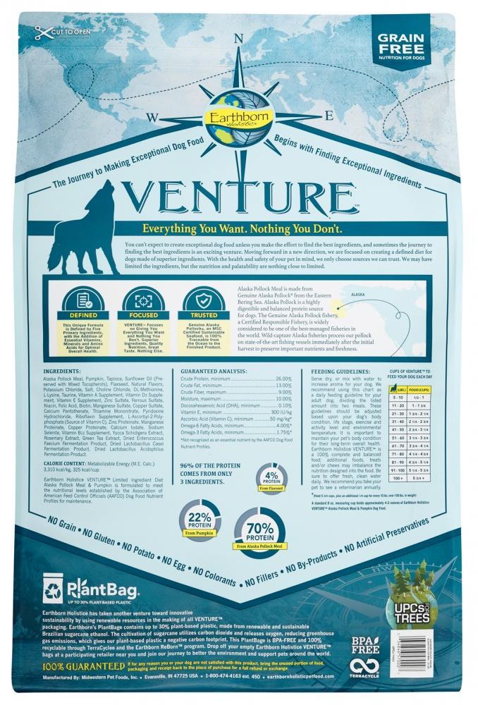 Earthborn Holistic Venture Grain Free Alaska Pollock Meal and Pumpkin Dry Dog Food